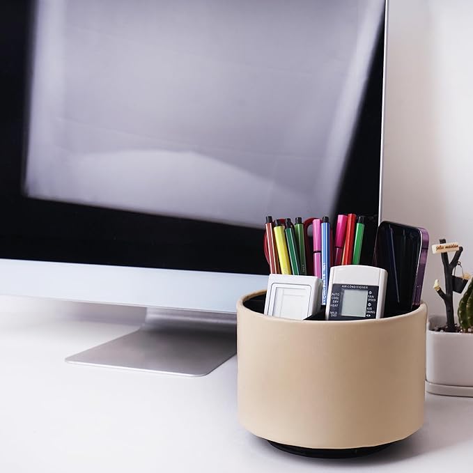 - ✎360° Revolving Design: You can freely rotate the pen holder steadily left and right,unique spinning base design allows easy access to items from any directions.The non-slip pads on the bottom keep it stay in place when rotating.