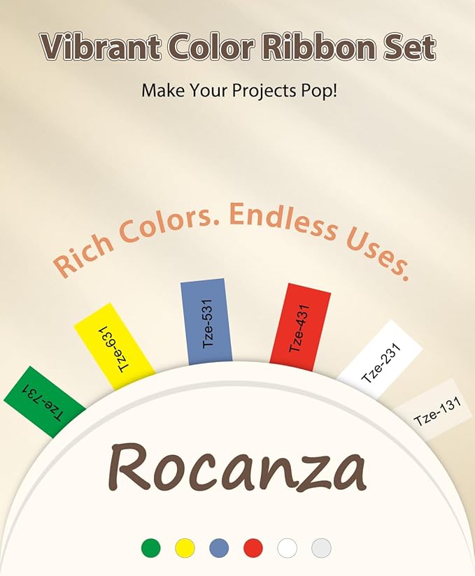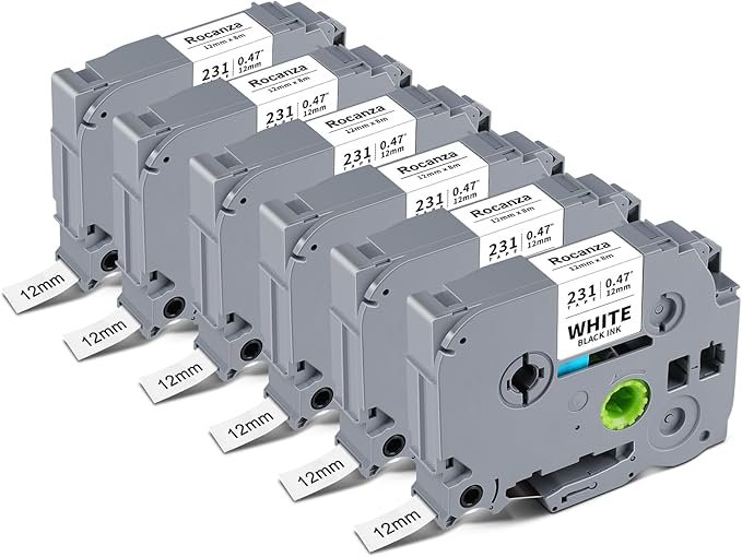 - Rocanza TZE-231 12mm 0.47" Laminated White Label Tape – 6 Pack Compatible for Brother p touch label tape tz-231 tze231. Width: 0.47 Inch (12mm), Length: 26.2 Feet (8m) each tape. Color: Black on White
