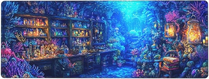 Magical Sea Mouse Pad 31.5 X 11.8 Inch Big Desk Rubber Base Stitched Edges Keyboard Pad XXL Mouse Mat for Home Game and Office