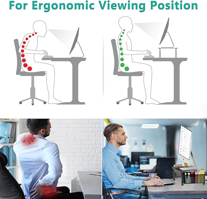 - Ergonomic: This computer riser for laptop, monitor, notebook, or any device by 4.2 inches, 5.0 inches, or 5.8 inches off the desk to create a comfortable viewing position and a healthier sitting position which helps reduce stress on the neck and back