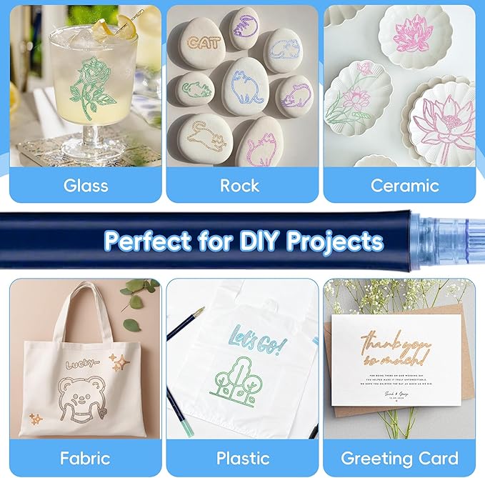 - Wide Applications: finenolo Shimmer Outline Marker Pen Set works on almost any creative surface - whether smooth (glass, ceramic, metal, plastic) or porous (paper, canvas, wood, stone) - all can perfectly present shining effects. From card making, gift decorating to Easter egg painting, scrapbook designing, even professional art creation, these quick-drying Glitter Markers Pen meet all-scene demands, making every artwork shine brilliantly!