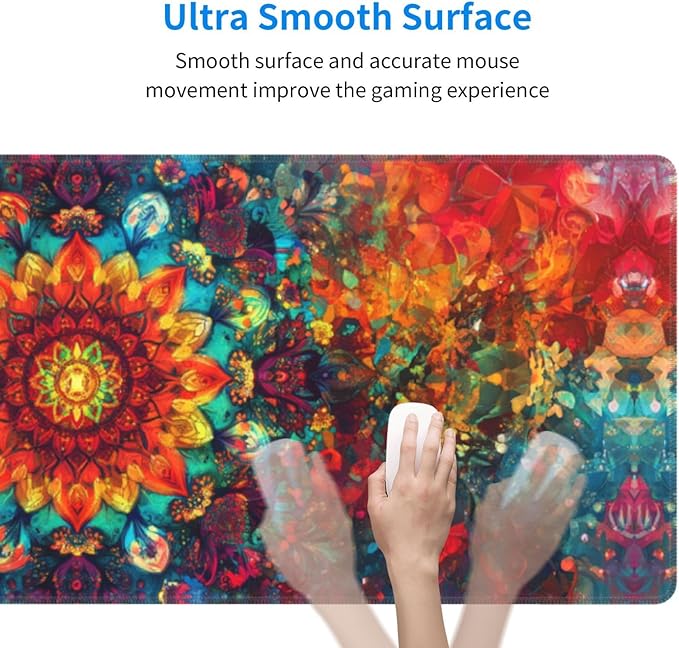 Mandala Mouse Pad 31.5 X 11.8 Inch Big Desk Rubber Base Stitched Edges Keyboard Pad XXL Mouse Mat for Home Game and Office