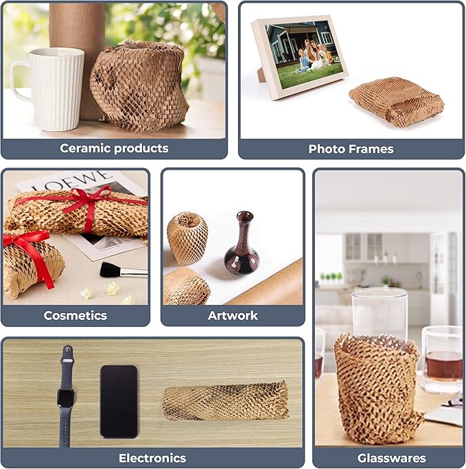 - ☘️Our durable honeycomb paper moving replacement bubble wrap is perfect for packing a variety of fragile or delicate items, including glassware, plates, cups, porcelain, antiques, wine boxes, bottles, tableware, vases, Christmas decorations, and fruit. It helps keep your items safe during shipping, moving, and storage. Additionally, packaging paper can be used to fill empty spaces in boxes, preventing items from shifting during transit