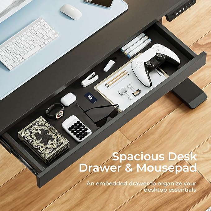 COMHOMA Electric Standing Desk with Drawers, 48 x 24'' Sit Stand up Desk with Monitor Stand, Laptop Stand, Height Adjustable Ergonomic Home Office Computer Desk with Memory Preset Controller (Black)