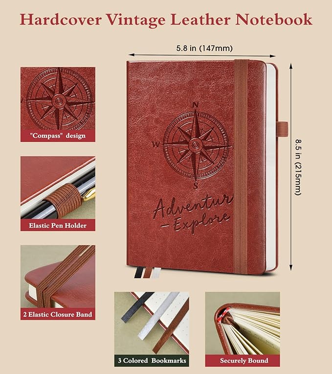 - 【Vintage Vegan Leather Design with Adventure Flair】:The PAIBAS dotted journal showcases an embossed “Adventure Explore” design on premium vegan leather, merging timeless charm with wanderlust.Ideal for students, professionals, travelers, and creatives, it excels as a bullet journaling, travel journal, work notebook, Bible study companion, or daily reflection tool.