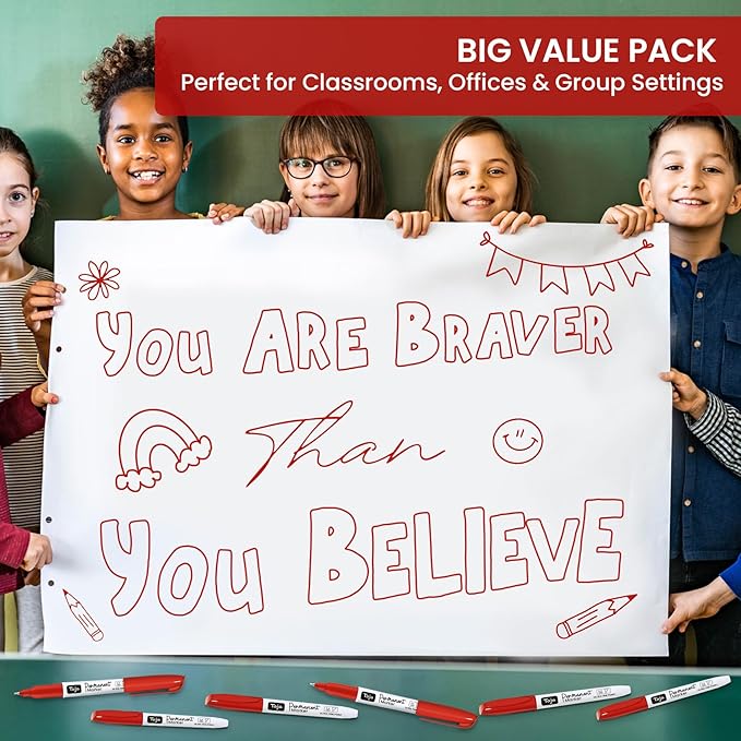 - Big Value Pack: Includes 30 red permanent markers in one practical, easy-to-access pack. Whether you’re stocking up for a classroom, office, art studio, or shipping department, this bulk set ensures you’ll always have reliable markers on hand—no last-minute shortages, no interrupted workflow.