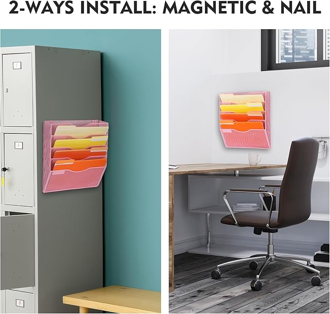 - 5 Pockets: The wall file organizer comes with mounting screws that can be easily mounted on the wall
