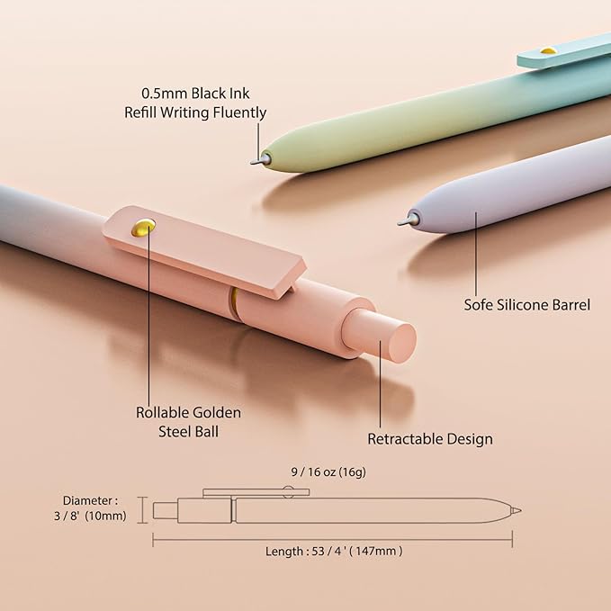 - Retractable Gel Pens: Practical push-pull design makes neutral pens easy to use, click to open/close. In addition, these 0.5mm gel pens for writing can also be refillable.