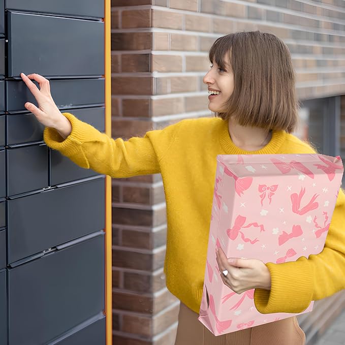 Poly Mailers 14.5x19 Inch 50 Pcs - Pink Bow printed Shipping Bags, 2.4mil Thickness, Waterproof and Tear Resistant Mailing Envelopes, Self-Sealing Packaging Bags for Small Business