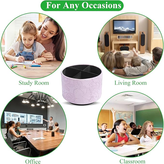 - ✎360° Revolving Design: You can freely rotate the pen holder steadily left and right,unique spinning base design allows easy access to items from any directions.The non-slip pads on the bottom keep it stay in place when rotating.