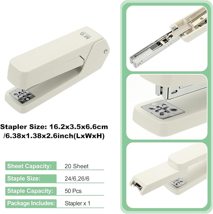 - Color: Gray White;Stapler Size: 16.2x3.5x6.6cm/6.38x1.38x2.6inch(LxWxH);Sheet Capacity: 20 Sheet;Staple Size: 24/6,26/6;Staple Capacity: 50 Pcs;Package Includes: Stapler x 1