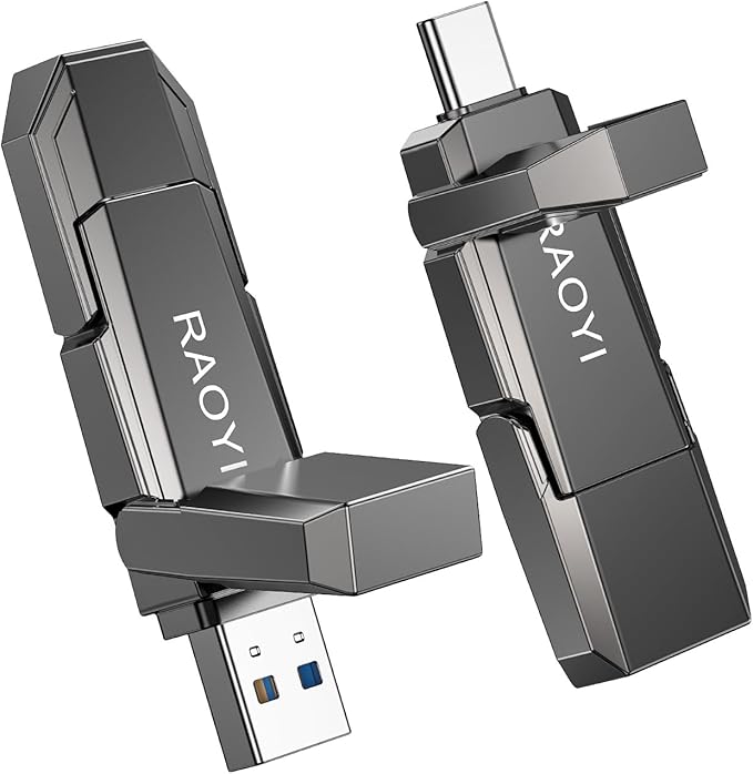 RAOYI 512GB USB C External SSD, 2-in-1 Solid State Drive Up to 450MB/s Dual USB 3.2 + Type-C Thumb Drive Portable SSD Drive for iPhone 15/16, Android, Tablet, PC and PS4