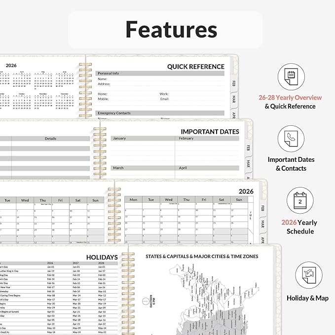 - Plan Confidently β Cover from January 2026 to December 2026, Features 12 months of monthly and weekly pages, and also inclueds 3 extra monthly pages for October to December 2025 and 12-monthly tabs, with Lay-flat capability for all your planning and scheduling needs, and measures 8.5" x 11"
