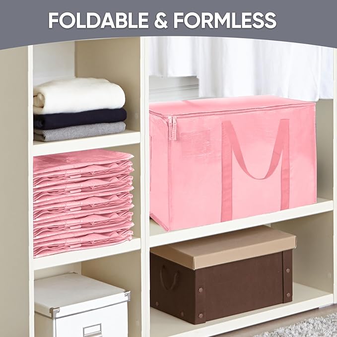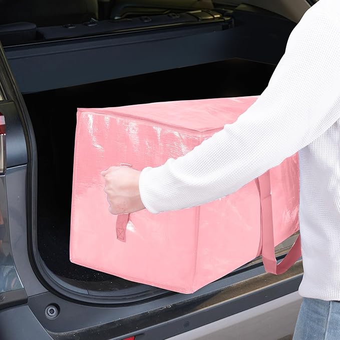 TICONN 6 Pack Extra Large Moving Bags with Zippers & Carrying Handles, Heavy-Duty Storage Tote Moving Boxes for Space Saving (6 Pack, Coral)
