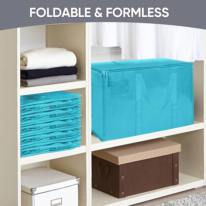 TICONN 2 Pack Extra Large Moving Bags with Zippers & Carrying Handles, Heavy-Duty Storage Tote Moving Boxes for Space Saving (2 Pack, Aqua)