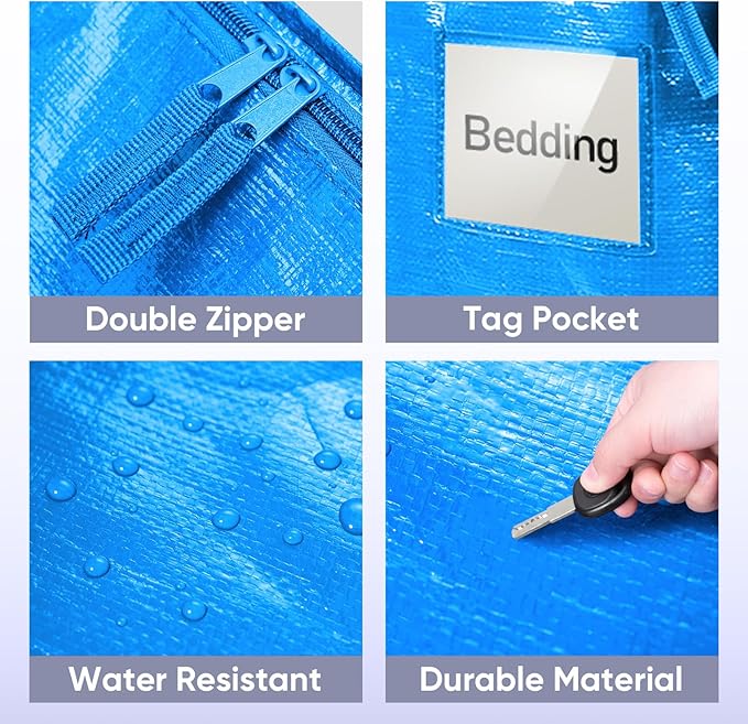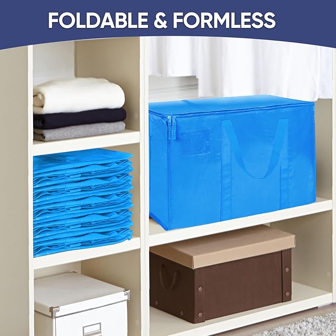 TICONN 6 Pack Extra Large Moving Bags with Zippers & Carrying Handles, Heavy-Duty Storage Tote Moving Boxes for Space Saving (6 Pack, Sky Blue)