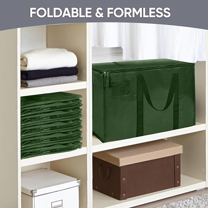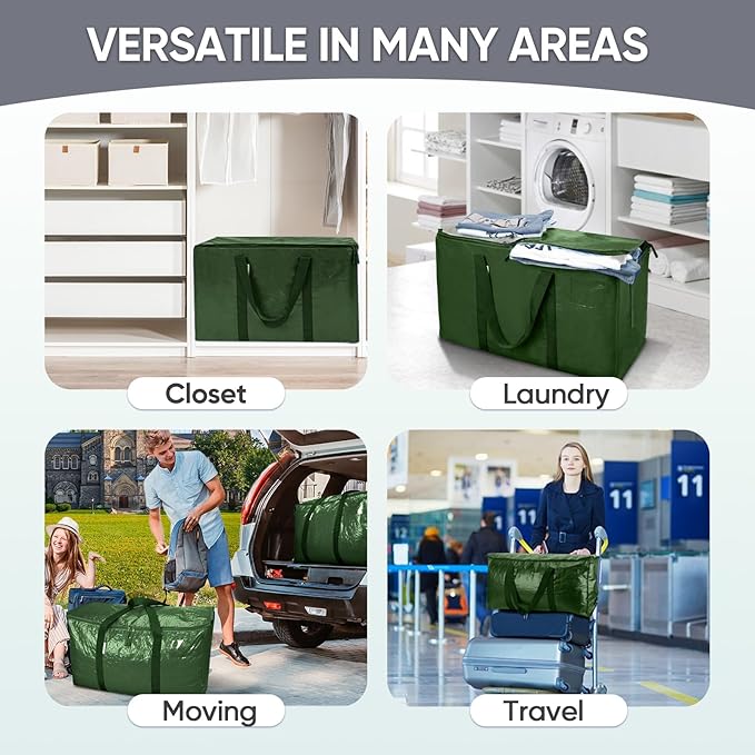 TICONN 2 Pack Extra Large Moving Bags with Zippers & Carrying Handles, Heavy-Duty Storage Tote Moving Boxes for Space Saving (2 Pack, Olive)
