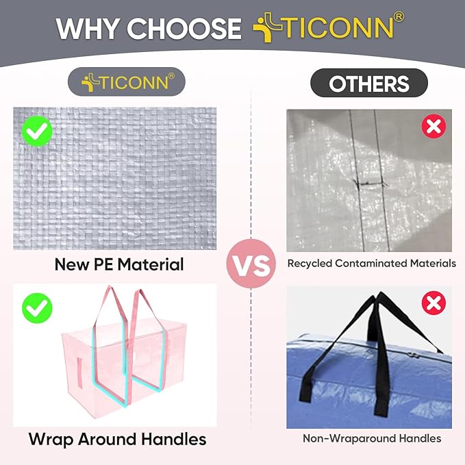 - Heavy-Duty: Made with premium PE material with wide and thick carrying handles surround the luggage/bag, giving the moving bags much more strength to hold heavier loading than stitched handles