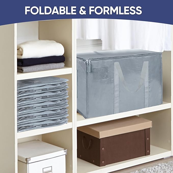 TICONN 4 Pack Extra Large Moving Bags with Zippers & Carrying Handles, Heavy-Duty Storage Tote Moving Boxes for Space Saving (4 Pack, Light Grey)