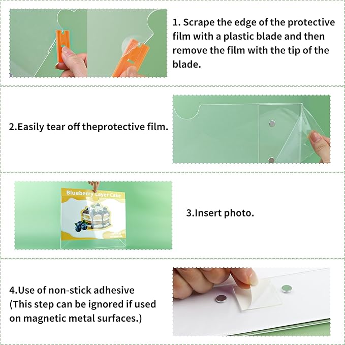 - Versatile Use Options: These acrylic rigid sign holders with magnet and adhesive dots, it can be firmly attached to metal surfaces or stuck on smooth walls