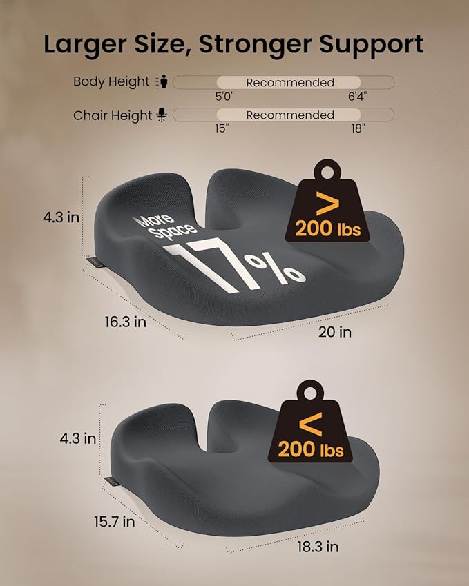 - Solution for Target People: Our upgraded extra-large seat cushion is tailored to meet the needs of individuals, providing a spacious and supportive seating solution designed to accommodate for weights exceeding 200 lbs with superior comfort and durability