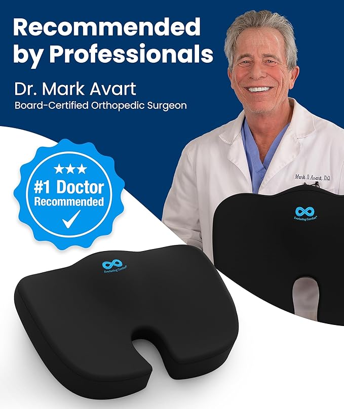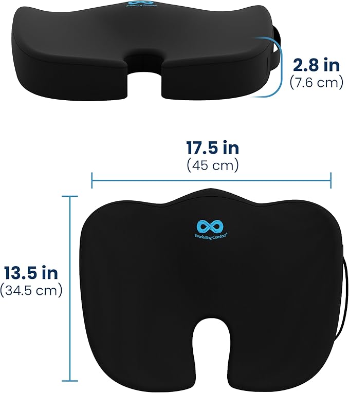 Everlasting Comfort Doctor Recommended Memory Foam Seat Cushion for Office Chairs & Car Seat - Ergonomic Office Desk Accessories for Tailbone Pain Relief, Sciatica & Back Support