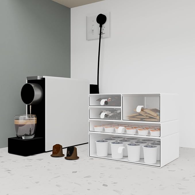 - Widely Applicable: Makeup storage organizer suits lipstick, blushes, foundation, bronzer, mascara, eyeshadow, nail polis, Can also be used to store jewelry, sunglasses, personal accessories, grooming tools, keepsakes. And this drawer organizer can also accommodate all office supply accessories, such as pen, paper clip, pencil, marker, ruler, eraser, scissors, etc. It can also store children's toys and handmade tools, and DIY products. Coffee pods, tea bags, etc. are also suitable for being classified and stored in these drawers.