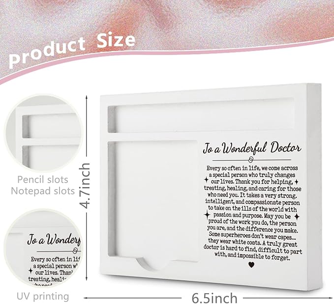 Doctor Appreciation Gifts for Women Men, to a Wonderful Doctor Quote Desk Decor, Office Self-Stick Note Pad Holder YBB06