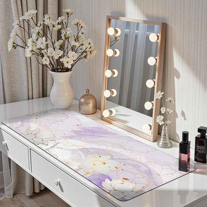 iCasso Desk Cover Mat, Extra Large Lotus Mouse Pad, Desk Pad Mat,Office Matt for Desktop Protector, Anti-Slip XXL Big Mousepad with Stitched Edges for Laptop Computer Keyboard(Purple Lotus Leaf)