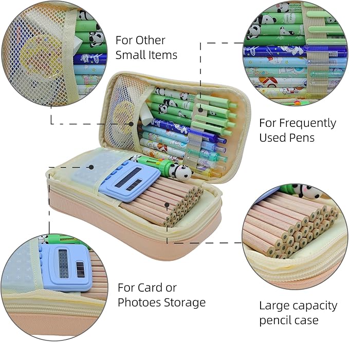 - 【Multi-Functional Organizer】More than a pencil case—use as a makeup bag, tech pouch, or travel organizer. Mesh pockets & elastic straps keep everything secure and visible.