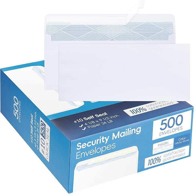 - Meet Office and Daily Use: Each set of packaging contains 500 pieces, providing sufficient supply for your business. The #10 envelope measures 4-1/8 x 9-1/2 inches.