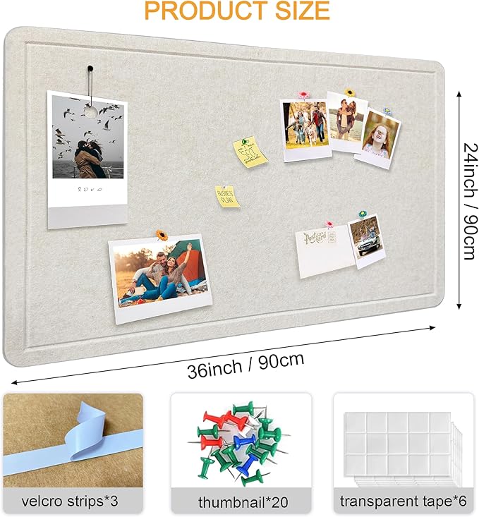 - š READY-TO-USE KIT: Includes 20 vibrant color push pins ā instantly organize notes, photos, and reminders on the premium thick felt surface. No extra purchases needed! (We also give you a removable adhesive strip)
