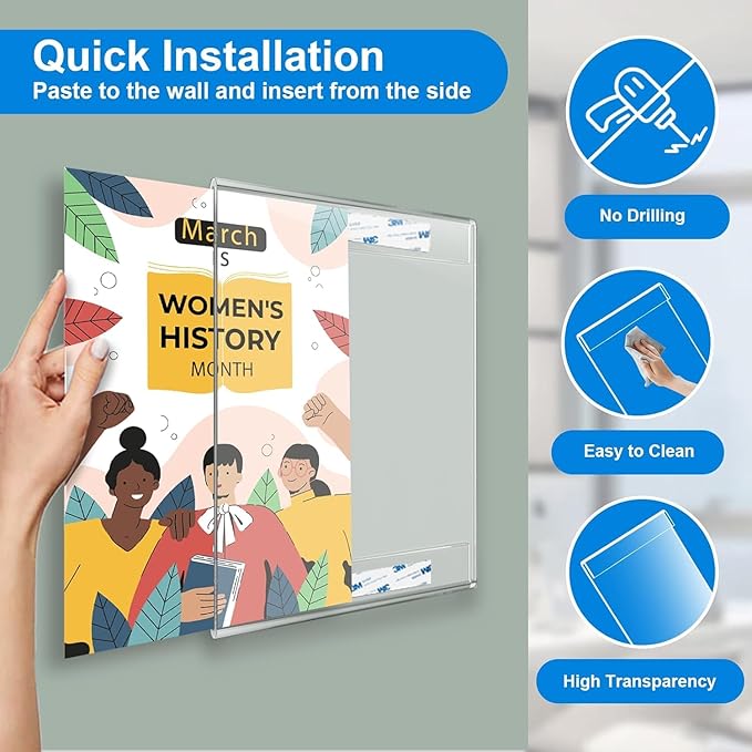 - 【Easy to Replace Posters】Our acrylic frame 8.5 x 11 have openings on both sides, easily slide posters into the wall frame from either side without moving the sign holder.