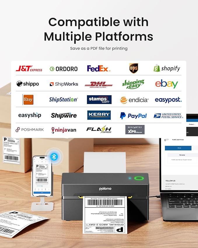 - Reliable Support: POLONO offers a 2-year warranty for its thermal printer. Our dedicated customer support team is available via email and phone to assist with any issues, with responses provided within 24H. The Bluetooth thermal label printer comes with detailed setup instructions, ensuring easy installation and reliable performance for your business needs. POLONO PL80E is an efficient, clear, simple, and reliable Bluetooth thermal shipping label printer