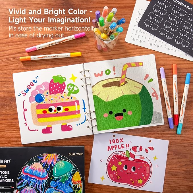 Shuttle Art 24 pack Dual Tone Acrylic Paint Markers, 48 Colors Acrylic Paint Pens for Rock Painting, Ceramic, Wood, Canvas, Glass, Stone, Fabric, Card Making, DIY & Art Supplies