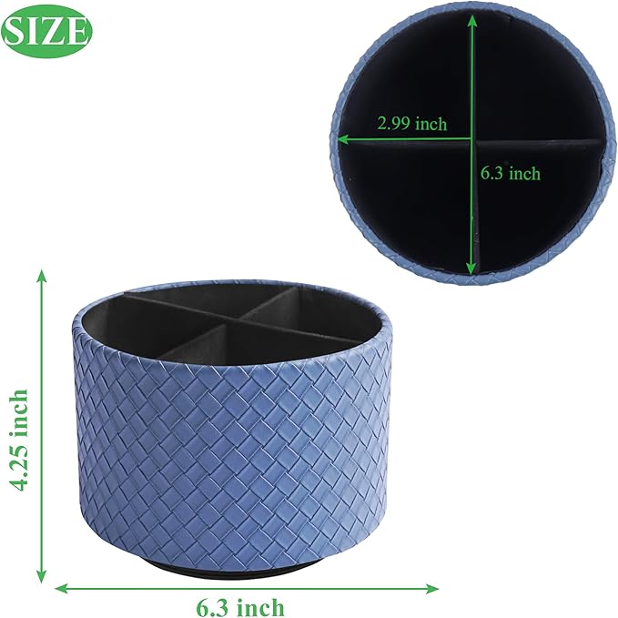 Hennaja Round Leather Art Supply Organizer,Remote Control Holder,360 Degree Spinning,Multi-Functional Pencil Holder,4 Compartments Desktop Stationary Organizer(1-Weave Blue)