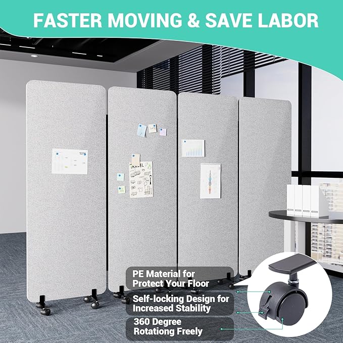 - MOVING EASILER & SMOOTHLY: Our sound proof dividers is equipped with self-lockable universal wheels, which help you move around more easily. The brakes on the room divider wheels will improve the stability and prevent slipping. The reinforced metal base is rust-proof and maximises the life of the partition room dividers.
