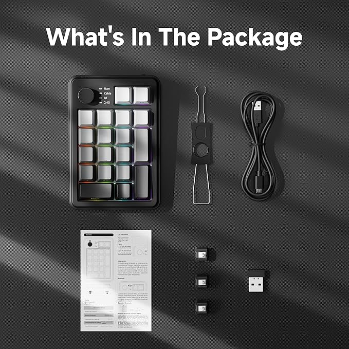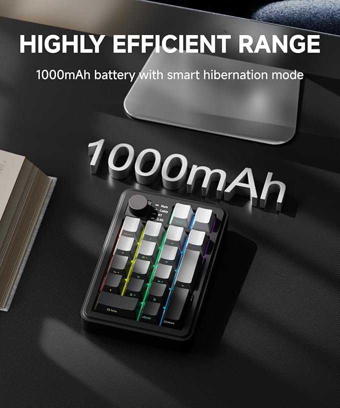 - 【Tri-Mode Connectivity】: Mechanical numpad features 2.4GHz wireless/Bluetooth 5.0/USB-C wired triple-mode connectivity. Number pad intuitive top-mounted toggle switch enables instant mode switching with single-flick operation. Capable of pairing with 3 devices simultaneously. Compatible with Windows, macOS, IOS, and Android systems. Support PC, laptop, Mac, smartphone, iPad, and tablet.