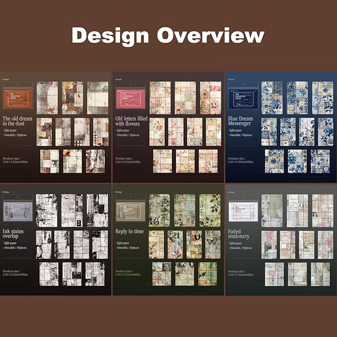 - Artistic Vintage Designs: Features 6 themed styles including floral botanical collage and antique-style prints with 10 unique patterns each that enrich scrapbook and journal pages with layered vintage charm