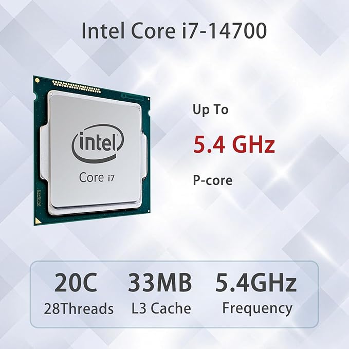 - [Uncompromised Performance] Intel Core i7-14700 Processor (20 Cores, 28 Threads, 33MB Intel Smart Cache, Base Frequency at 1.5 GHz, Up to 5.4 GHz at Max Turbo Frequency), with Intel UHD Graphics