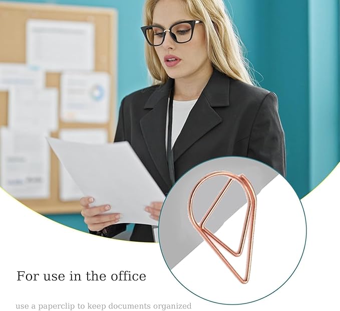 - [High Quality] The water drop-shaped paperclip is rust-resistant and durable in rose gold color, made of metal material with exquisite craftsmanship and corrosion resistance. It is compact and convenient, and the surface of the office paperclip is smooth with rounded corners, ensuring long-term use