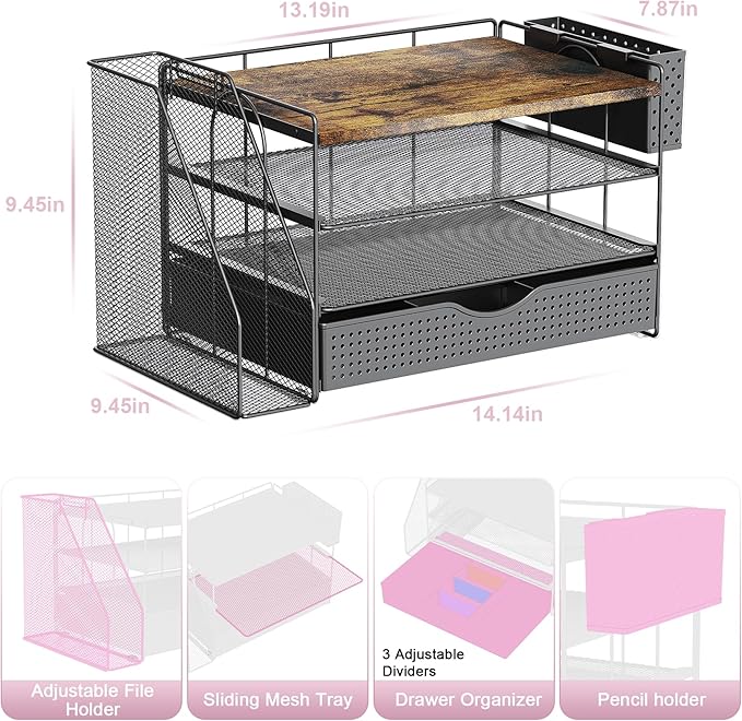 - 【Improve Work Efficiency】: This pen organizer contains 4 trays, 1 magazine rack, 1 pen holder, and 1 sliding drawer, which can help you quickly identify the contents of each compartment, helping to keep papers, notebooks, and office supplies neatly organized and easily accessible., so that you can stay busy and creative all day long.