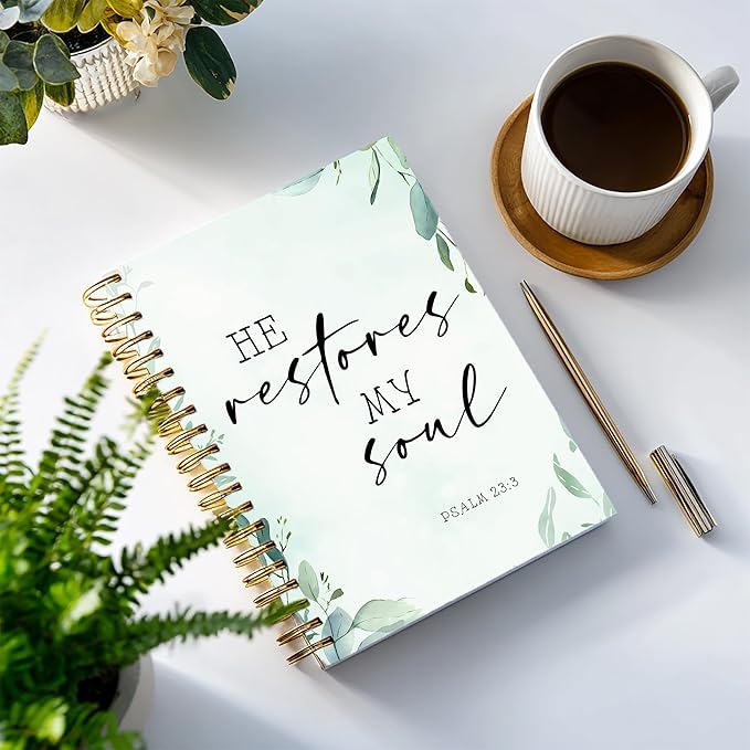 - 2.Bible Journaling Hardcover Spiral Notebook The notebook has a double spiral design, the sturdy spiral binding allows the notebook to lay flat, making it easy to write on both sides of the page. made of thick paper, prevents ink from leaking, safe, easy to write