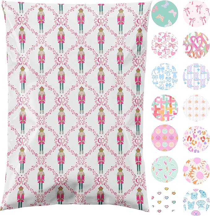 6x9 Designer Poly Mailer 100 Pack Heavy Duty Waterproof Self Seal Shipping Bags for Small Business Large Mailing Envelopes Bulk Tear Resistant Packaging Pink Nutcracker Christmas Holiday