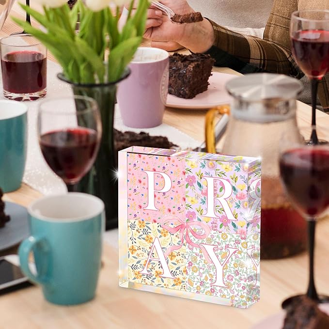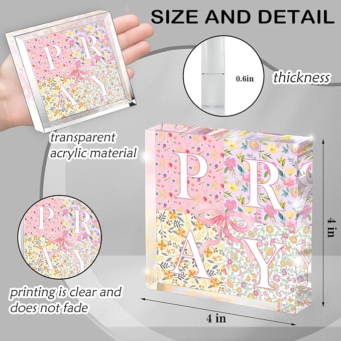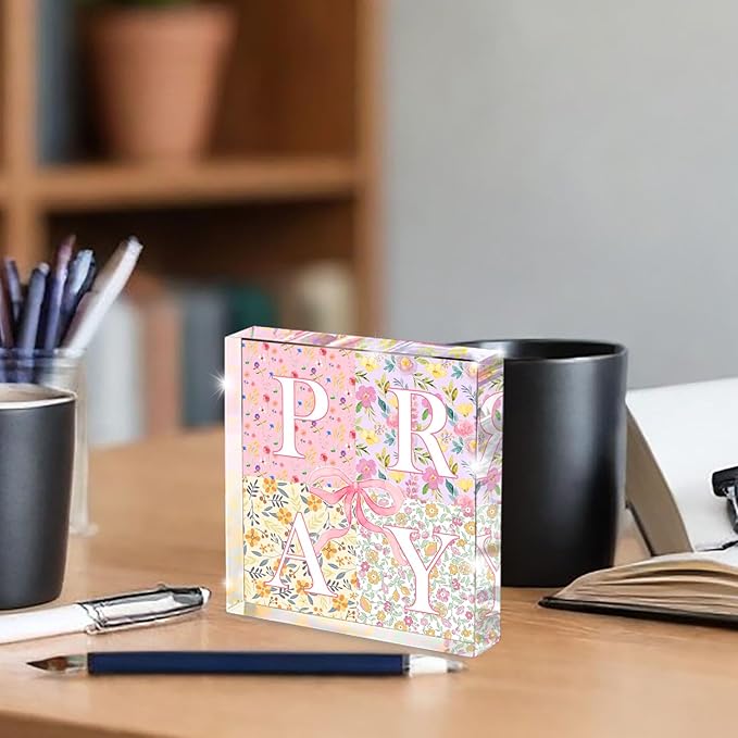 - Inspirational Christian Decor: This elegant pink acrylic plaque features "Pray" design, 4 different flowers, offering daily encouragement and faith-based inspiration for home, office, or workspace.
