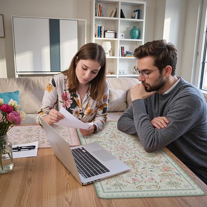iCasso Desk Cover Mat Green,Extra Large Mouse Pad for Desktop,Anti-Slip Keyboard Pad with Stitched Edges,Cute Floral Computer Mat for Women,Aesthetic Desk Protector for Office Home Dorm
