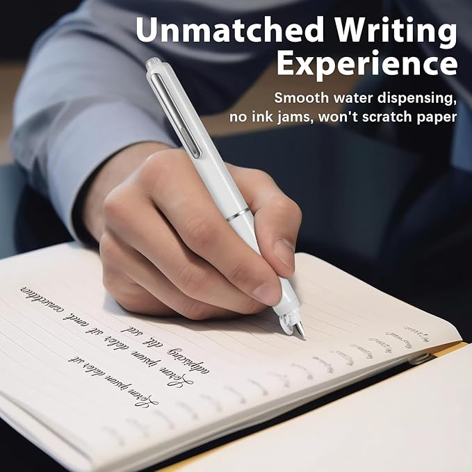 - EFFORTLESS CLICK-TO-WRITE DESIGN: Experience writing without interruption with this retractable fountain pen that opens and closes with a simple click—no cap to misplace or twist off. Perfect for quick notes or long writing sessions, this capless fountain pen combines practicality and elegance in a sleek design that feels just right in your hand.