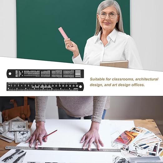 - Feature - The ruler features ink printing technology on its surface, ensuring that the scale is clear and sharp, remaining non-fading and non-blurring even after long-term use. It has a dual-scale design, and the back is carefully printed with a complete set of conversion formula for metric and SAE units, allowing beginners to quickly master unit conversion skills. Additionally, it includes a hanging hole design for convenient storage and accessibility.