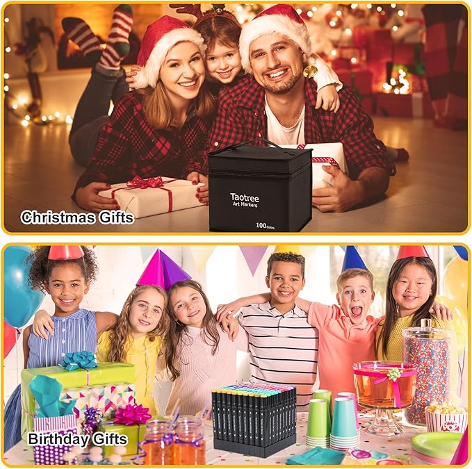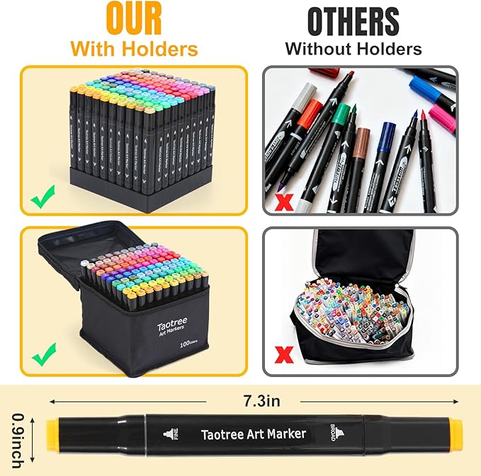 Taotree Alcohol Markers 100 Colors with Case & Holders, Dual Tips Art Coloring Markers Pens, Chisel & Fine Sketch Pens, Art Supplies for Artist Kids Adult Coloring Books Painting, Drawing, Sketching