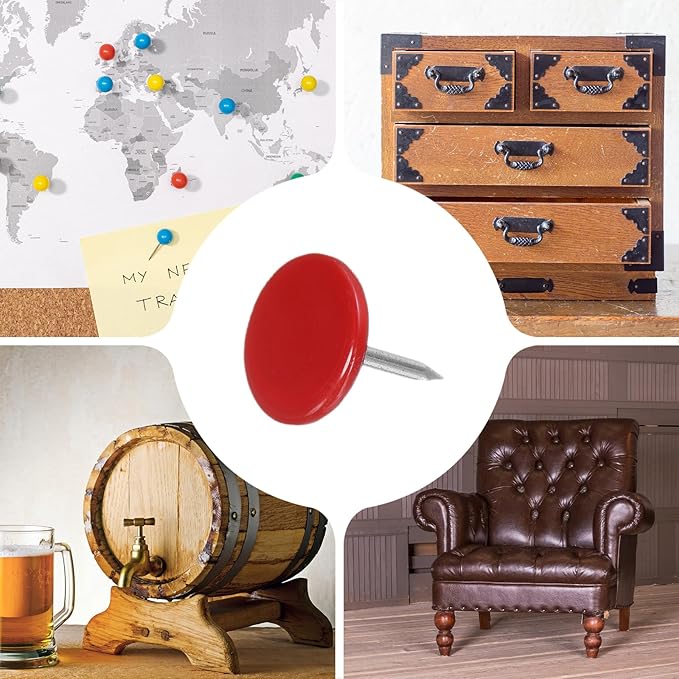 - [Wide Application] - The thumb tacks are both practical and decorative and can be used in a variety of furniture and DIY craft projects. Widely used to decorate furniture such as upholstery, sofas, headboards, chairs, benches, stools, wooden boxes, and can also be used to fix memos, pictures, maps and other lightweight items on cork boards